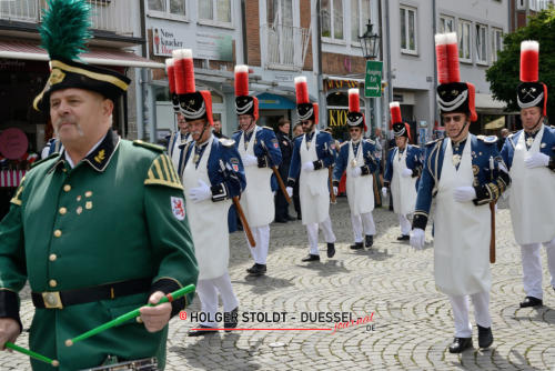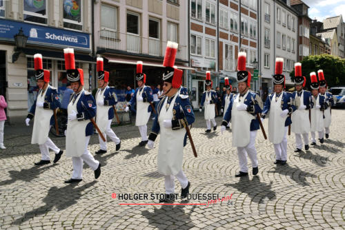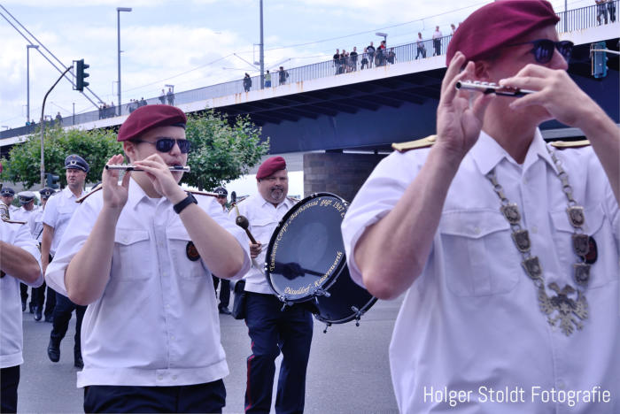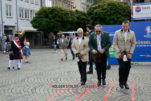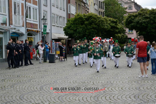 Die wetterbedingte gestutzte Schützenparade der Bilker Schützen 2024 in Bild und Ton.